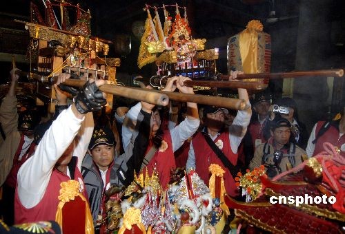 2月13日,臺(tái)灣信眾抬媽祖神像到湄洲島媽祖祖廟進(jìn)香謁祖。當(dāng)日,428名臺(tái)灣媽祖信眾第一次經(jīng)由海上客運(yùn)直航抵達(dá)湄洲島媽祖祖廟進(jìn)香謁祖。這是2008年底海峽兩岸簽訂“兩岸海運(yùn)協(xié)議”后的第一個(gè)兩岸海上客運(yùn)直航活動(dòng),也是湄洲島口岸繼與金門、馬祖實(shí)現(xiàn)海上客運(yùn)通航后的又一突破。中新社發(fā) 王東明 攝