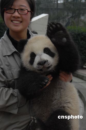 5.12汶川大地震,臥龍核桃坪熊貓基地遭到重創(chuàng),為了保證國寶大熊貓的安全,臥龍50多只大熊貓被分批緊急疏散轉(zhuǎn)移,有27只熊貓轉(zhuǎn)移到成都、北京、福州等地寄養(yǎng),其余轉(zhuǎn)移至雅安碧峰峽基地。自2008年7月6日早晨7:52和8:36,臥龍大熊貓“幗幗”順利產(chǎn)下全球首對雙胞胎之后,臥龍雅安基地2008年共有13只熊貓幼仔成活。2月12日雅安碧峰峽熊貓基地為這13只熊貓寶寶舉行簡單的入住熊貓幼兒園的儀式。中新社發(fā) 羅小韻 攝