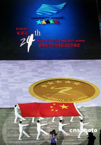2月18日,第24屆世界大學(xué)生冬季運(yùn)動會開幕式在哈爾濱國際會展中心體育館隆重舉行!氨⑶啻、未來”,哈爾濱大冬會在熊熊圣火的映襯下揭開大幕,在未來10天內(nèi)來自45個參賽代表團(tuán)青春洋溢的冰雪健兒們將在賽場上展開競逐!本屆大冬會是中國首次承辦世界綜合性冬季體育盛會,也是繼北京奧運(yùn)會和殘奧會后中國又一次承辦的國際性賽事。中新社發(fā) 富田 攝