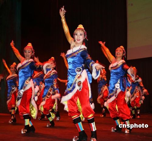 為歌頌今日西藏的變化,中國(guó)民族舞蹈演員與當(dāng)?shù)孛绹?guó)南加州華人華僑一起進(jìn)行了多次西藏民族舞蹈演出,受到當(dāng)?shù)厝A人華僑熱烈歡迎。