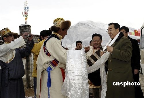 2月25日,中國(guó)藏歷年初一,西藏自治區(qū)黨委書記張慶黎冒著風(fēng)雪來(lái)到拉薩市城關(guān)區(qū)納金鄉(xiāng)嘎巴村拜年,向村民們祝賀藏歷新年,并走村入戶與村民們一起過(guò)年。中新社發(fā) 廖攀 攝