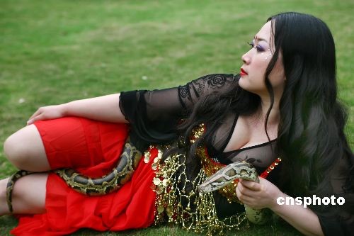 組圖:芙蓉姐姐與蟒蛇共舞拍攝寫真(5)