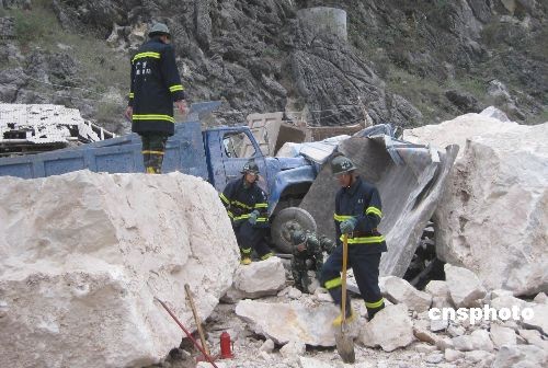 圖:廣西河池采石場(chǎng)山體大面積塌方 1人死亡(2)