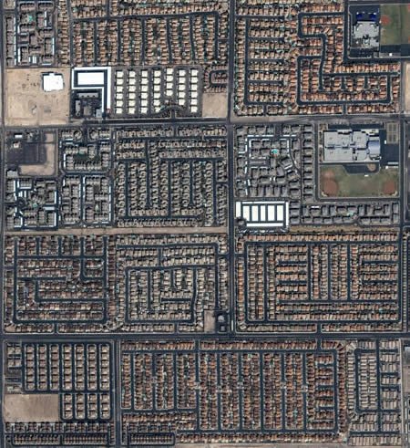 拉斯維加斯街景:這張由商業(yè)衛(wèi)星IKONOS攝于2004年9月的衛(wèi)星圖,顯示了內華州拉斯維加斯繁華熙攘的街道和房屋。