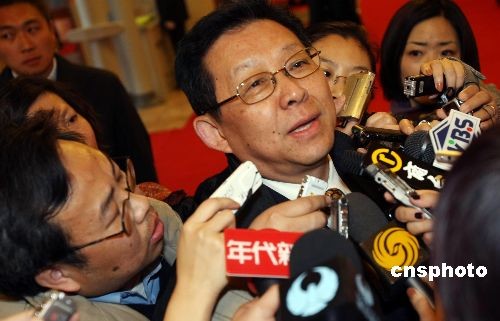 3月3日下午,商務(wù)部部長陳德銘參加全國政協(xié)十一屆二次會議開幕會時被記者圍堵采訪,他表示中國的經(jīng)濟(jì)仍然在增長,不能說進(jìn)入衰退。中新社發(fā) 傅丹丹 攝