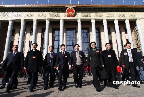 3月13日,第十一屆全國人民代表大會第二次會議在人民大會堂閉幕,代表們滿面春風地步出人民大會堂。中新社發(fā) 杜洋 攝