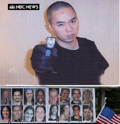 這張美國全國廣播公司2007年4月18日晚間新聞的電視截圖顯示,弗吉尼亞理工大學(xué)槍擊案兇手、韓國籍學(xué)生趙承熙擺出持槍射擊的姿勢。趙承熙16日在作案間隙曾向美國全國廣播公司寄過一個包裹,里面包括錄像帶和照片,錄像中有不少攻擊和謾罵“富人”的內(nèi)容。趙承熙在弗吉尼亞州一所大學(xué)兩個多小時內(nèi)兩度開槍行兇,造成33人死亡,20多人受傷,兇案震驚全球。