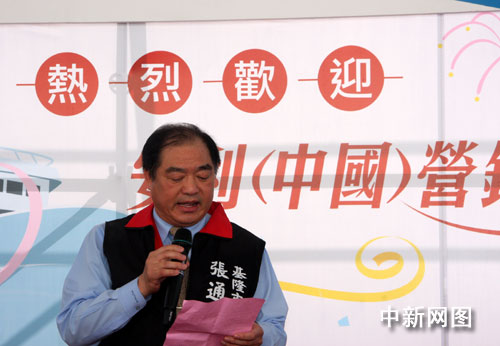 圖為基隆市市長張通榮在歡迎儀式上致辭。