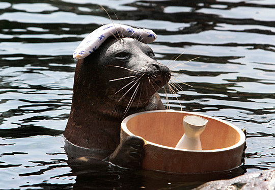 圖:海豹在池中擺可愛造型吸引游客(2)