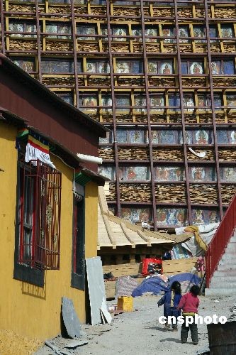 3月18日,經(jīng)過14年的鑿刻和修建,西藏最大的石經(jīng)塔——“甘珠爾曲東”有望在今年6月完整地呈現(xiàn)在世人面前,并將成為信徒們轉(zhuǎn)經(jīng)以及朝佛的又一重要目的地。這座位于拉薩城中心、布達(dá)拉宮斜對面藥王山上的石經(jīng)塔被命名為“甘珠爾曲東”,塔高約30米,共13層,由上百萬塊刻有藏傳佛教經(jīng)典《甘珠爾經(jīng)》文的石板堆砌而成。上百名刻經(jīng)藝人參與了經(jīng)文的雕刻。盡管石經(jīng)塔尚未完全建成,每天已經(jīng)有大量信眾來此轉(zhuǎn)塔祈福。中新社發(fā) 杜洋 攝