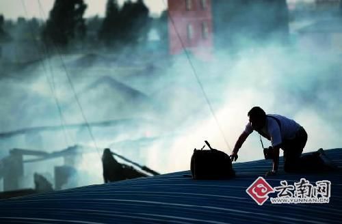 22日,因著火紙廠警戒線還沒(méi)有解除,很多記者都被擋在外面,尤其是一些扛著照相機(jī)的記者,更是惹眼。昆明某報(bào)社攝影記者高某昨日下午6點(diǎn)左右再次來(lái)到現(xiàn)場(chǎng)時(shí),被擋在警戒線外。高某為了抓拍鏡頭,他爬到隔壁一家工廠的房頂上,不小心踩通房頂,“砰”地一聲,從6米多高房頂?shù)粼诘厣,他?dāng)時(shí)不能動(dòng)彈,幸好被一起采訪的同事發(fā)現(xiàn)。