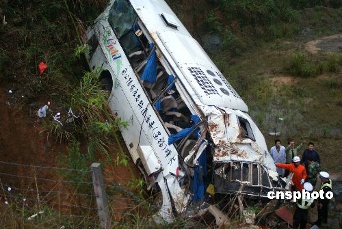 3月27日,一輛大型客車(車牌號為閩CY9537)從江西省萬年開往福建省泉州石獅方向,在南平長(春)深(圳)高速2898公里處(延平區(qū)大橫鎮(zhèn)路段),從右側(cè)方向路邊溝翻至山溝,車輛嚴(yán)重毀壞。據(jù)初步了解,該車輛核載45人,車上駕乘人員25人,死亡18人,其中當(dāng)場死亡17人,在送往醫(yī)院途中死亡1人,死者中男性12名、女性6名。受傷7人分別送往南平第一醫(yī)院(1人)、人民醫(yī)院(1人)、九二醫(yī)院(5人),醫(yī)務(wù)人員正全力組織搶救,生命征較穩(wěn)定,暫無生命危險。