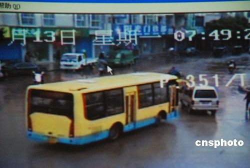 4月13日上午,廣西荔浦縣發(fā)生一起涉嫌襲擊運(yùn)鈔車押運(yùn)員事件。當(dāng)日7時(shí)45分左右,荔浦縣郵政儲(chǔ)蓄押鈔車行至荔浦縣荔平路郵政儲(chǔ)蓄支行時(shí),押運(yùn)人員遭到一名身穿雨衣、頭戴頭盔男子的襲擊。該男子手持噴霧器突然朝兩名押運(yùn)員身體噴射液體,噴射后丟下噴霧器逃跑,運(yùn)鈔車錢款未受任何損失。目前調(diào)查工作正在進(jìn)行中。圖為男子襲擊運(yùn)鈔車押運(yùn)員事件案發(fā)現(xiàn)場(chǎng)錄像(鼠標(biāo)處)。中新社發(fā) 周利朔 攝
