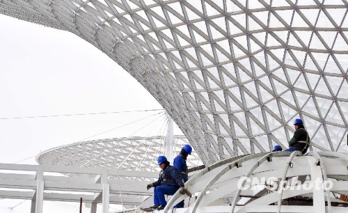 2010年1月22日,作為世博會(huì)“一軸四館”永久場(chǎng)館之一的世博軸工程正式竣工,這標(biāo)志著世博建設(shè)邁入新階段。世博軸是由地上二層、地下二層組成的立體交通樞紐,長(zhǎng)約1045米,寬約130米,總占地面積約13萬(wàn)平方米,總建筑面積25.1萬(wàn)平方米,地下空間建筑面積約19萬(wàn)平方米,地上建筑面積約6.1萬(wàn)平方米。世博軸工程是2010年上海世博會(huì)的主入口和中央人行立體交通樞紐,是本屆世博會(huì)的地標(biāo)性建筑。世博軸工程的竣工標(biāo)志著工程建設(shè)階段的完成,即將邁入運(yùn)營(yíng)準(zhǔn)備階段。預(yù)計(jì)4月15日之前完成運(yùn)營(yíng)人員培訓(xùn)、功能用房和商業(yè)裝修。并計(jì)劃4月15日-4月底進(jìn)行試運(yùn)營(yíng)。中新社發(fā) 沈春琛 攝
