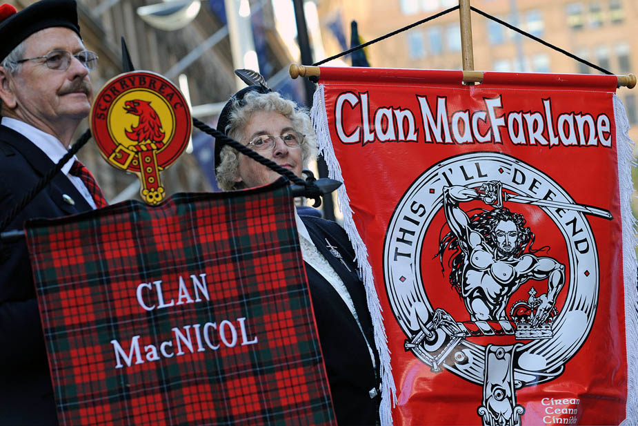 2009年7月1日,澳大利亞當(dāng)?shù)氐奶K格蘭籍男女老少,頭插羽毛、身穿格子裙、吹著蘇格蘭風(fēng)笛來到悉尼市中心,慶祝屬于他們的節(jié)日“蘇格蘭格子日”。