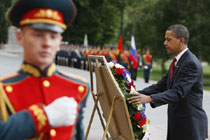 奧巴馬向烈士墓獻(xiàn)花圈