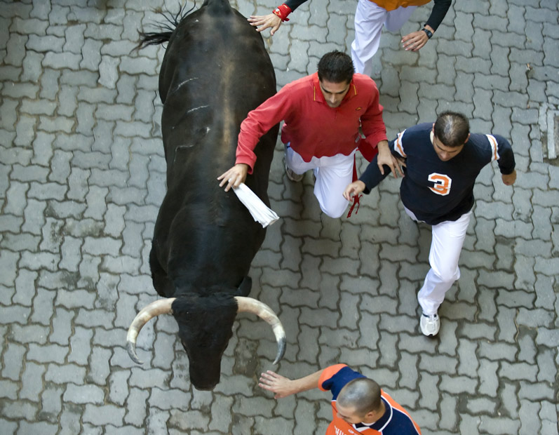 西班牙一年一度的潘普洛納奔牛節(jié)上驚險(xiǎn)場面層出不窮。奔牛節(jié)是潘普洛納的傳統(tǒng)節(jié)日,其歷史可以追溯到1591年,每年都吸引數(shù)十萬人參加。