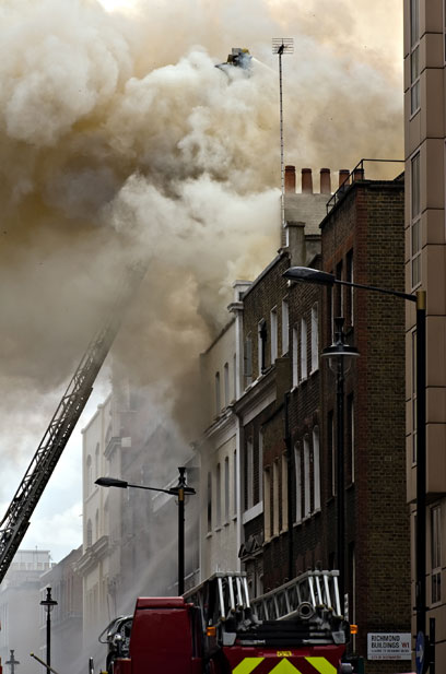 英國倫敦中部蘇豪區(qū)在當?shù)貢r間10日下午2時左右發(fā)生火警,起火的5層高商業(yè)樓宇被嚴重焚毀,現(xiàn)場冒出大量濃煙,在倫敦市內(nèi)多處均清楚可見。消防部門派出12輛消防車及60名消防員進行灌救。