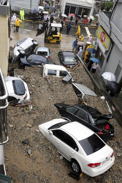高清圖:韓國釜山暴雨引發(fā)泥石流