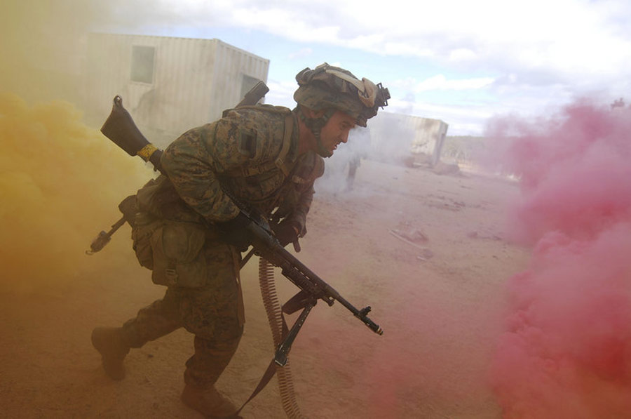 7月22日,澳大利亞羅克漢普頓,美國(guó)海軍陸戰(zhàn)隊(duì)與澳大利亞士兵參加“馬刀附身符行動(dòng)”聯(lián)合巷戰(zhàn)軍事演習(xí)。此次演習(xí)的目的旨在提高兩國(guó)軍隊(duì)的巷戰(zhàn)作戰(zhàn)能力及美澳之間的協(xié)同作戰(zhàn)水平。
