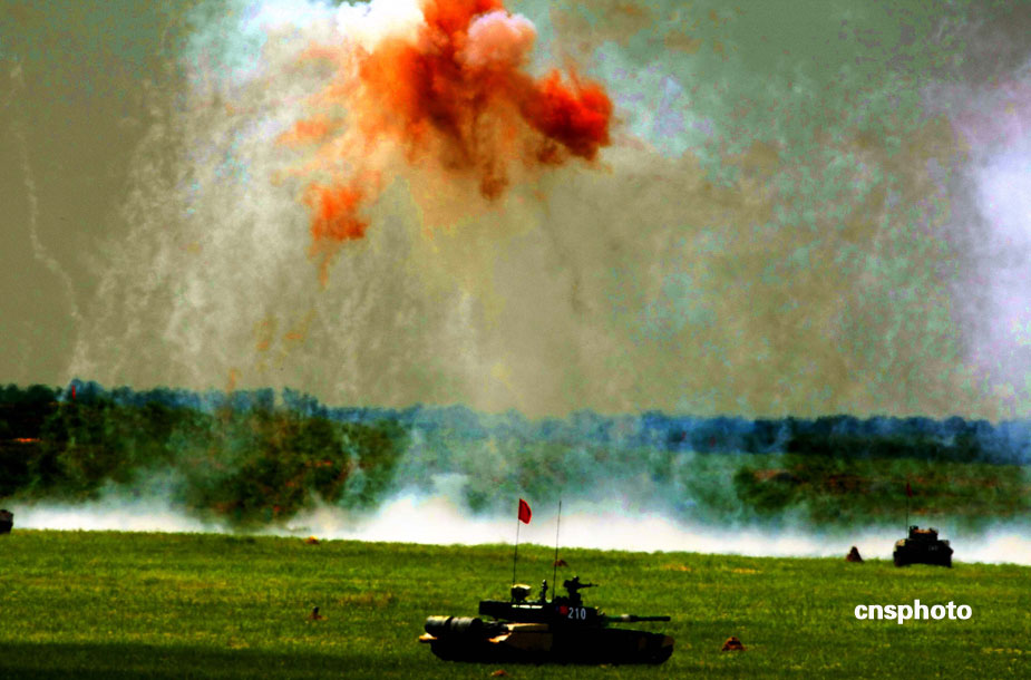 中國、俄羅斯兩軍總參謀長,7月23日上午到沈陽軍區(qū)洮南合同戰(zhàn)術訓練基地,觀看“和平使命2009”聯(lián)合反恐軍事演習。雙方以陸軍和空軍為主,中方參演部隊包括1個陸軍戰(zhàn)斗群和1個空軍戰(zhàn)斗群。俄方參演兵力包括1個陸軍加強摩步營、1個空降突擊連和部分空軍兵力,雙方投入兵力兩千多人。中新社發(fā) 宋吉河 攝