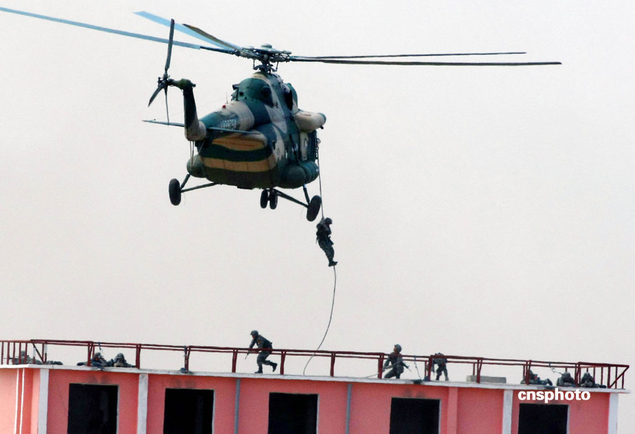 中國(guó)、俄羅斯兩軍總參謀長(zhǎng),7月23日上午到沈陽(yáng)軍區(qū)洮南合同戰(zhàn)術(shù)訓(xùn)練基地,觀看“和平使命2009”聯(lián)合反恐軍事演習(xí)。雙方以陸軍和空軍為主,中方參演部隊(duì)包括1個(gè)陸軍戰(zhàn)斗群和1個(gè)空軍戰(zhàn)斗群。俄方參演兵力包括1個(gè)陸軍加強(qiáng)摩步營(yíng)、1個(gè)空降突擊連和部分空軍兵力,雙方投入兵力兩千多人。中新社發(fā) 宋吉河 攝