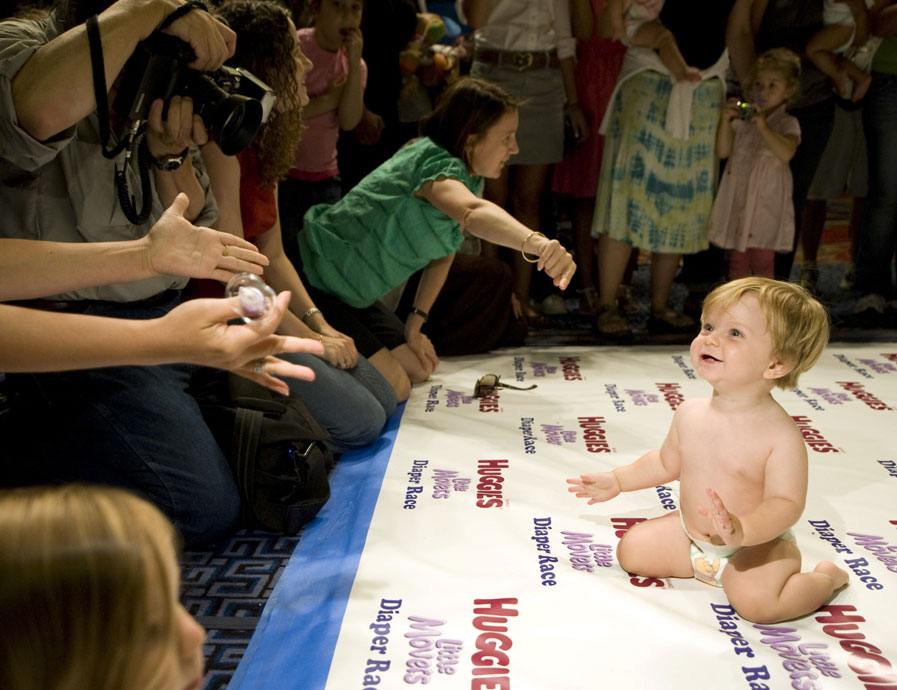 當?shù)貢r間7月24日,美國紐約舉行了一場趣味橫生的小寶寶爬行大賽,獲得冠軍的小寶寶贏得了一年免費的紙尿褲。