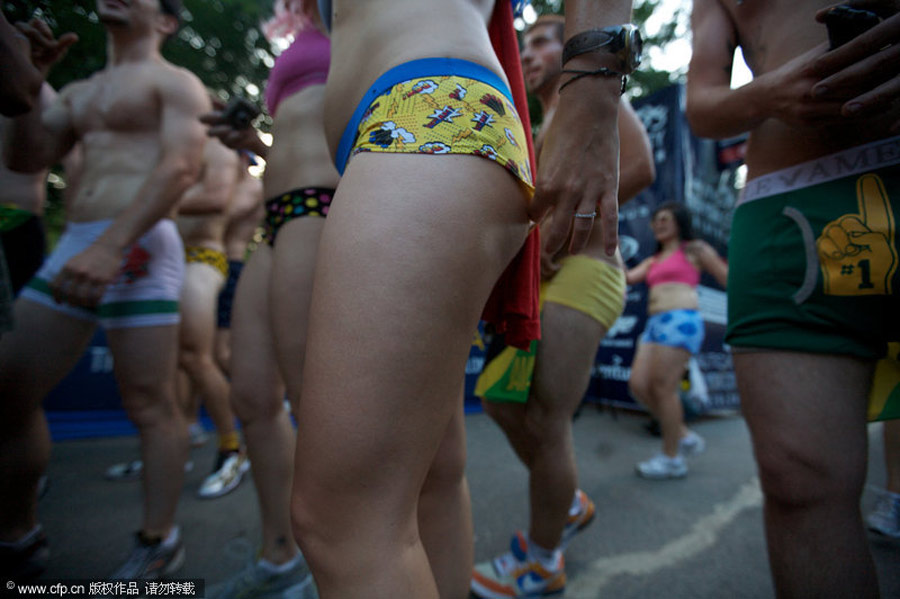 2009年7月,美國紐約,約200人參加了一場特殊的穿內(nèi)褲跑步大賽。選手們身穿內(nèi)衣褲從中央公園出發(fā)。比賽結(jié)束后,他們打破了“世界上人數(shù)最多的穿內(nèi)褲跑步大賽”的吉尼斯世界紀錄。