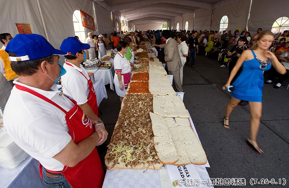 7月31日,在墨西哥首都200多人用肉等各種餡料制成長達(dá)46米的墨西哥三明治,試圖創(chuàng)造最長的墨西哥三明治紀(jì)錄。點(diǎn)擊觀看詳細(xì)內(nèi)容