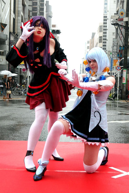 圖為兩名德國(guó)參賽者扮成日本動(dòng)畫(huà)人物。cosplay(角色扮演)指一種演繹角色的扮裝性質(zhì)表演藝術(shù)行為,如今已成為風(fēng)靡全世界的文化活動(dòng)。