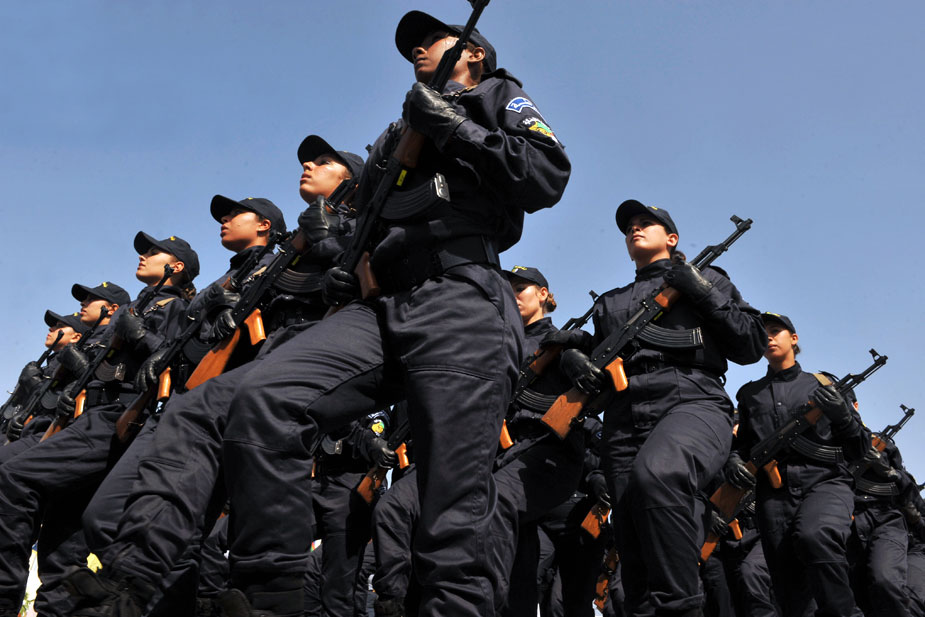 圖為女警察學員在畢業(yè)典禮上列隊行進。