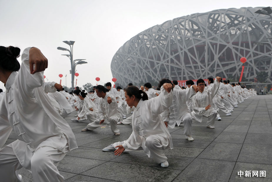8月8日,全國首個“全民健身日”北京主會場啟動儀式上,三萬多群眾進(jìn)行太極拳展示活動,在世界吉尼斯總部認(rèn)證官員的見證下成功打破世界紀(jì)錄。中新網(wǎng)記者 金碩 攝