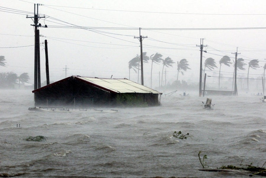莫拉克臺風(fēng)侵襲臺灣,造成南部大淹水,屏東縣林邊鄉(xiāng)整個地區(qū)都泡在水里。 劉學(xué)圣 攝