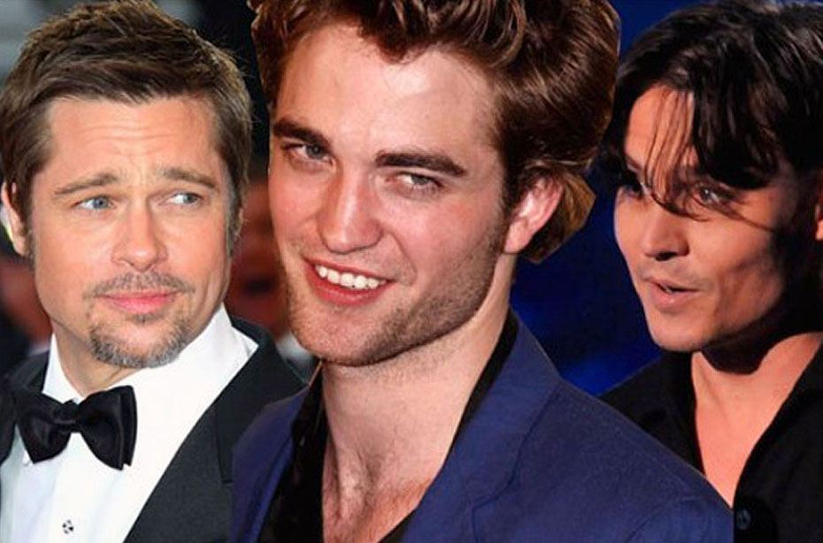 電影《暮光之城》中扮演邪性危險的性感吸血鬼而紅透全世界的美男羅伯特·帕丁森(中)擊敗了眾多強勁對手,最終登上了冠軍的寶座。