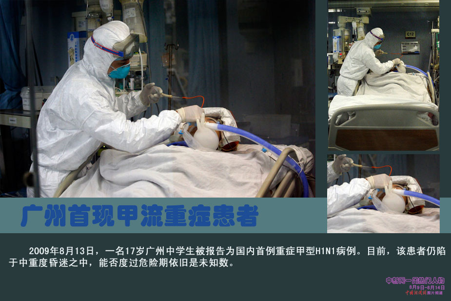 中新網(wǎng)本周熱點(diǎn)人物之廣州甲流患者——一名17歲廣州中學(xué)生報(bào)告為國內(nèi)首例重癥甲型H1N1病例,目前在廣醫(yī)一院廣州呼吸病研究所ICU救治重癥監(jiān)護(hù)。昨日記者在ICU外看到正接受重癥監(jiān)護(hù)的這名特殊病例,他陷于中重度昏迷,能否度過危險(xiǎn)期依舊是未知數(shù)。