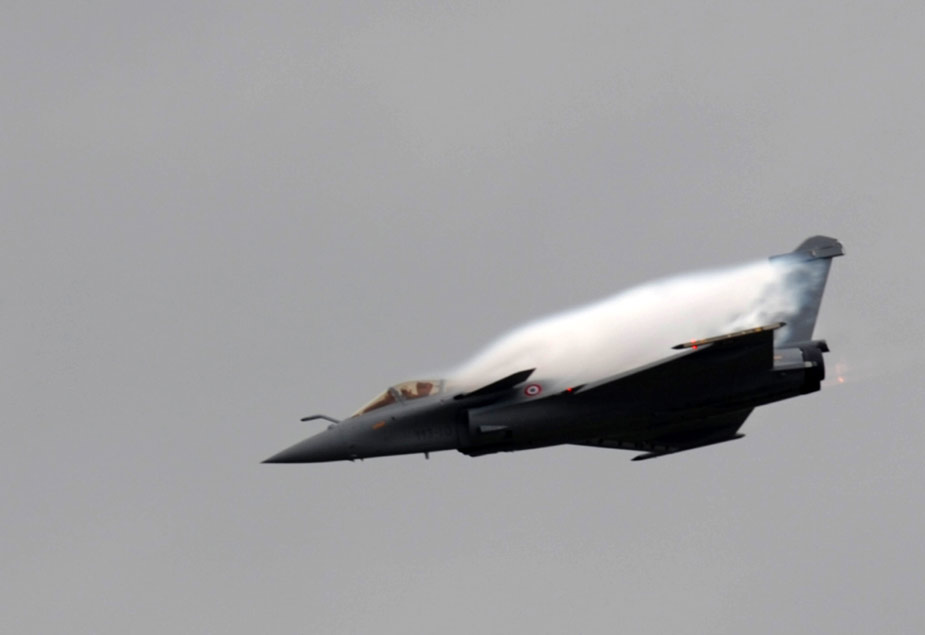 8月21日,在俄羅斯茹科夫斯基市舉行的第九屆國際航空航天展覽會(huì)上,法國著名的“法蘭西巡邏兵”飛行表演隊(duì)進(jìn)行了精彩的飛行表演。圖為法國的一架陣風(fēng)戰(zhàn)斗機(jī)亮相航展。