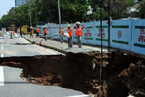 新德里路面塌陷成坑