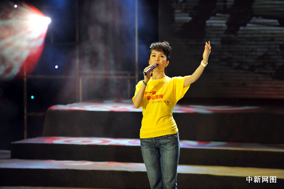 8月22日晚,北京舉行“兩岸一家 愛心無限”為臺灣同胞賑災義演晚會,大陸和臺灣演藝界明星登臺為臺灣災區(qū)同胞共獻愛心,晚會臨近結束時共收到各界捐款3000多萬元。中新網(wǎng)記者 金碩 攝