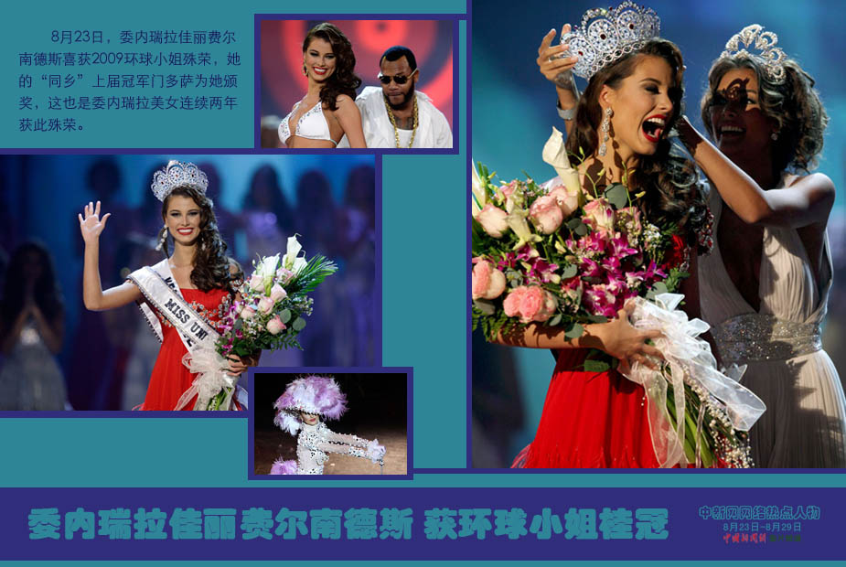 中新網本周熱點人物之——費爾南德斯 8月23日,在巴哈馬拿騷舉行的2009環(huán)球小姐大賽中,委內瑞拉小姐斯特凡尼婭·費爾南德斯奪得桂冠。