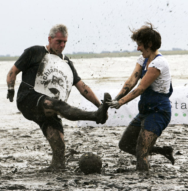 當(dāng)?shù)貢r(shí)間8月30日,德國(guó)北部海邊小鎮(zhèn)Brunsbuettel的泥灘上進(jìn)行一場(chǎng)別開生面的泥地足球賽。男女“球員”混合在一起,泥地中盡情撒野,享受著不一樣的樂趣。