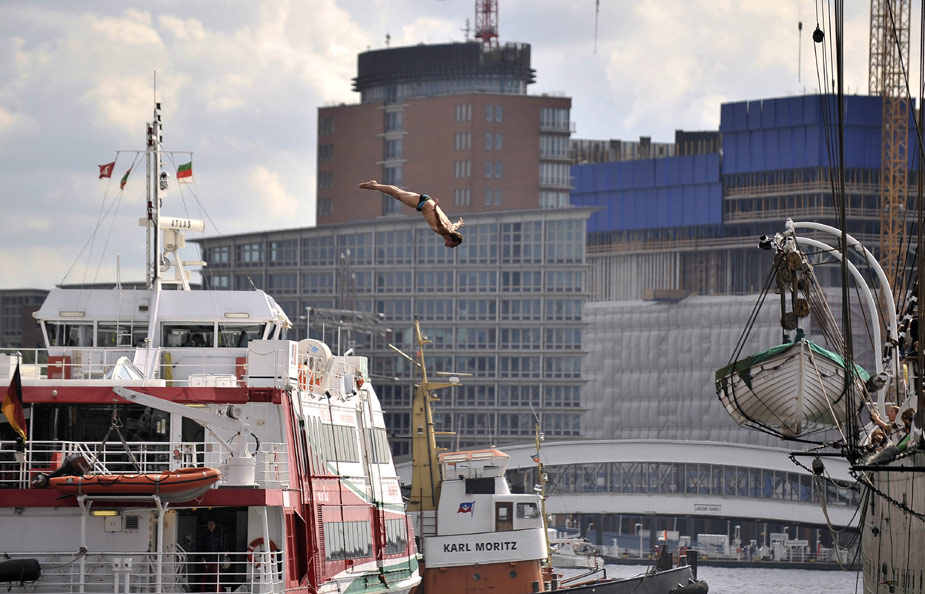 當(dāng)?shù)貢r間8月29日,世界懸崖跳水系列賽在德國漢堡舉行,吸引了眾多高手前來參賽。