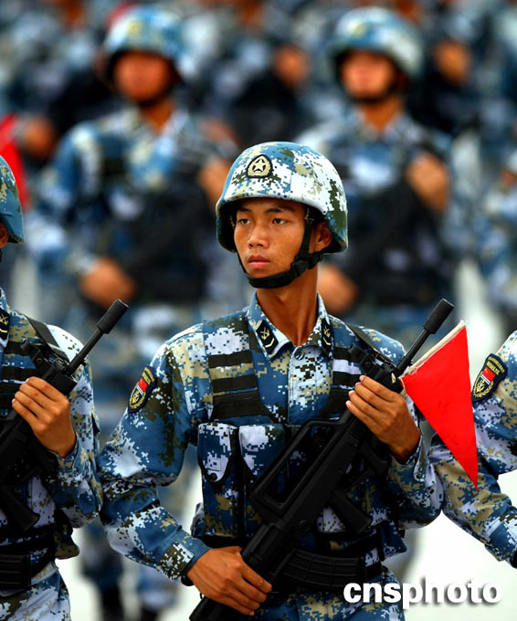 9月3日,解放軍官兵在位于北京郊區(qū)的一處徒步方隊(duì)閱兵村內(nèi)訓(xùn)練。今年國慶節(jié)將舉行新中國成立60周年國慶首都盛大閱兵儀式。中新社發(fā) 宋吉河 攝