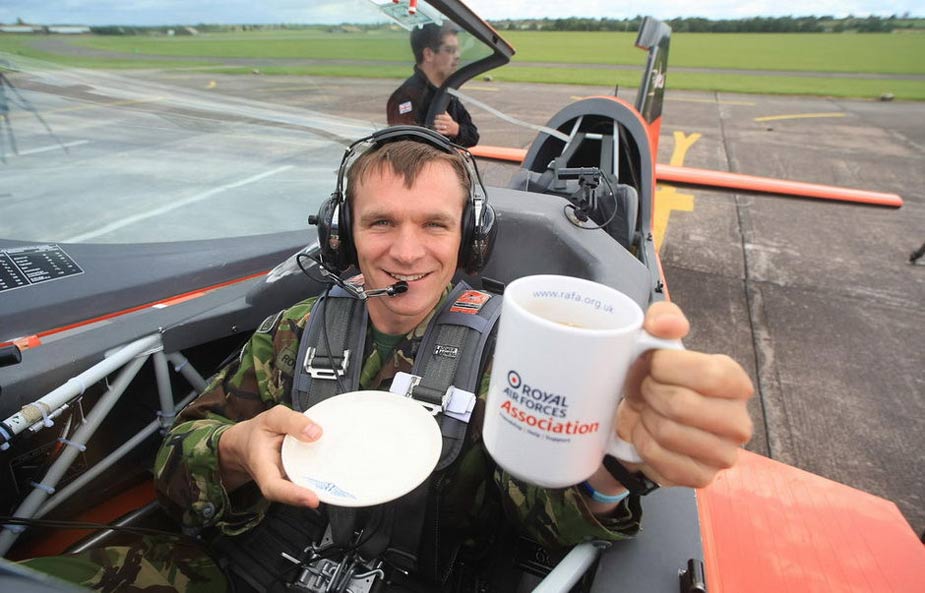 英軍人邊喝茶邊玩特技 駕機(jī)空中翻筋斗