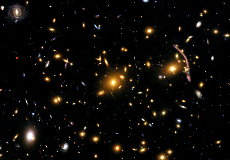 圖為哈勃望遠(yuǎn)鏡上的相機(jī)拍攝的近50億光年的星系A(chǔ)bell 370。