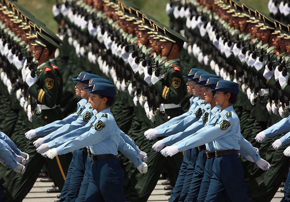 國(guó)慶60周年閱兵方陣中有三支“娘子軍”:三軍女兵方隊(duì)、女民兵方隊(duì)、女飛行員梯隊(duì)。這是新中國(guó)歷次閱兵中女兵方隊(duì)最多的一次,其中三軍女兵方隊(duì)和女飛行員梯隊(duì)是首次參加。圖片來(lái)源:新華網(wǎng)