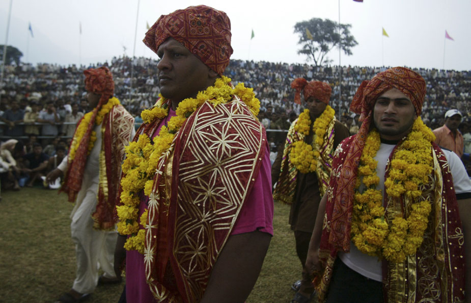 9月22日,印度格德拉,第5屆印度-巴基斯坦摔跤友誼賽在當(dāng)?shù)嘏e行。