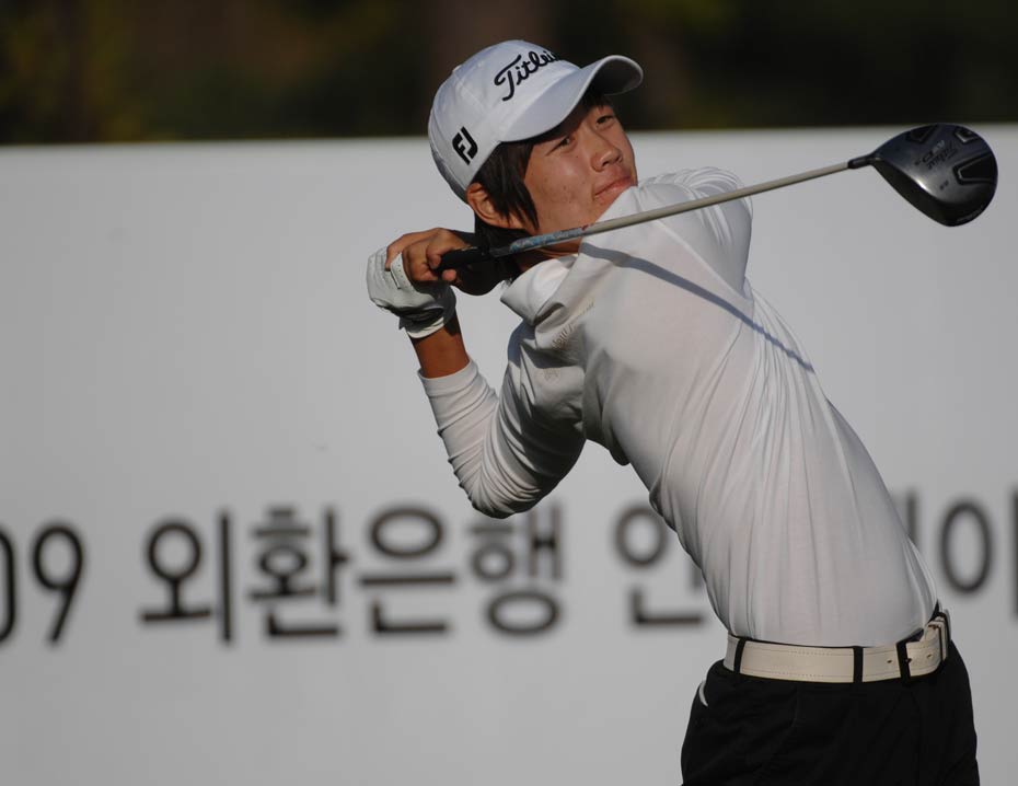 2009“韓國(guó)KEB銀行”中韓職業(yè)高爾夫球巡回賽韓國(guó)站于今天在韓國(guó)OSTAR高爾夫球俱樂部正式開桿,有47名球員代表中國(guó)參賽。圖為選手們上場(chǎng)第一天,揮桿開打的場(chǎng)面。(攝影:高力)