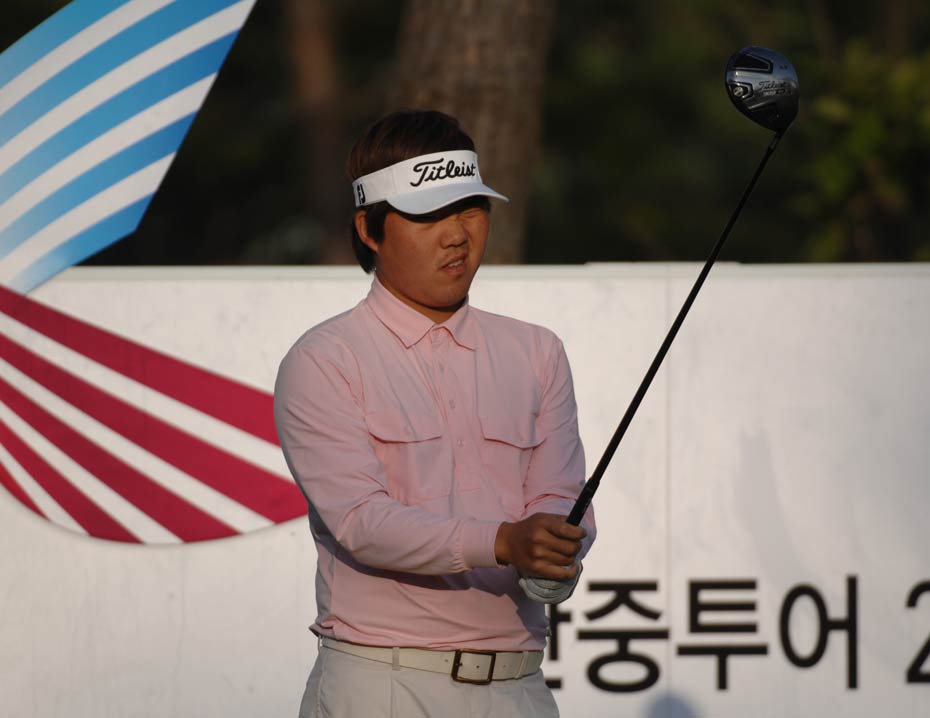 2009“韓國KEB銀行”中韓職業(yè)高爾夫球巡回賽韓國站于今天在韓國OSTAR高爾夫球俱樂部正式開桿,有47名球員代表中國參賽。圖為選手們上場第一天,揮桿開打的場面。