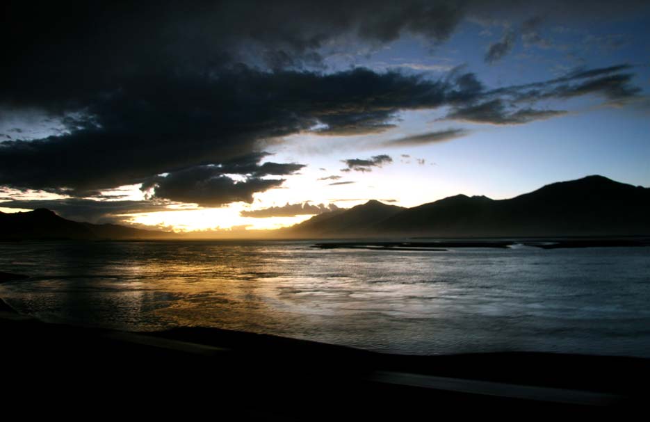 圖為從山南到拉薩的路上見到的夕陽(yáng)下的雅魯藏布江。