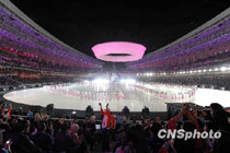 十月十六日晚,中華人民共和國(guó)第十一屆運(yùn)動(dòng)會(huì)在山東濟(jì)南奧體中心隆重開(kāi)幕。圖片來(lái)源:中國(guó)新聞網(wǎng)